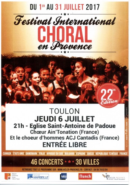 Ce concert sera donné en collaboration avec l'excellent choeur Ain'Tonation